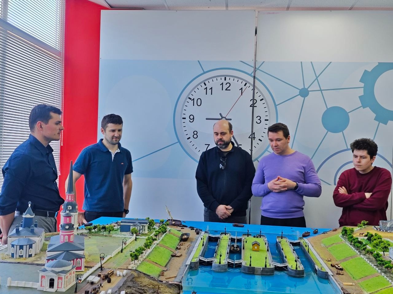 Наши наставники Юрий Скубченко и Артем Кудинов с удовольствием рассказали о том, что интересного об исторической части Шлиссельбурга они узнали во время работы над проектом и как полученную информацию удалось воплотить в макете. Специалисты компании с удовольствием слушали и задавали интересующие их вопросы. Встреча получилась дружеской и полезной.